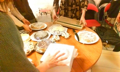 それぞれが手作りのケーキを持ち寄っての